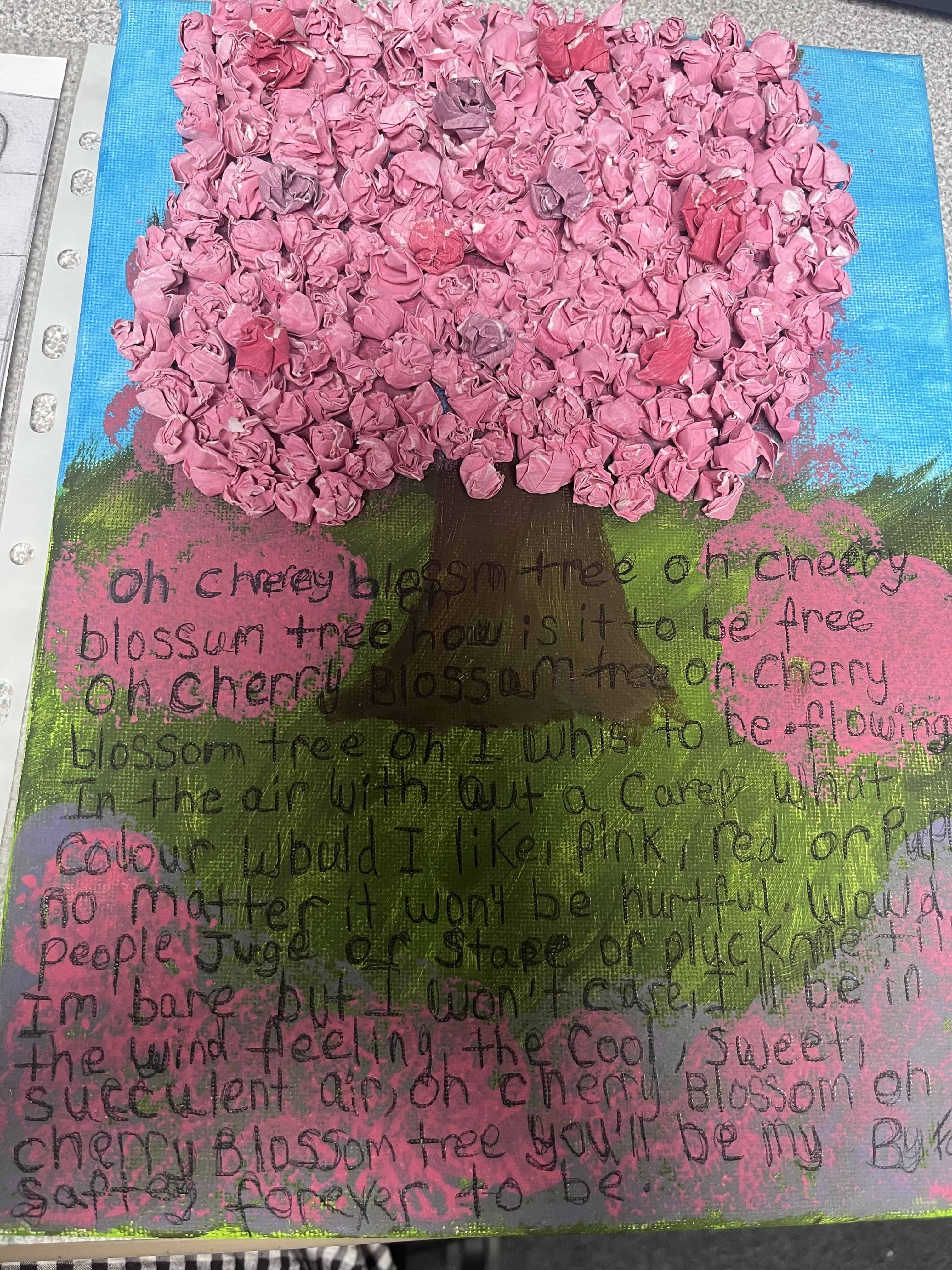 To enter, students create a piece of artwork and then write about how this connects to our chosen theme of Sacred Spaces.